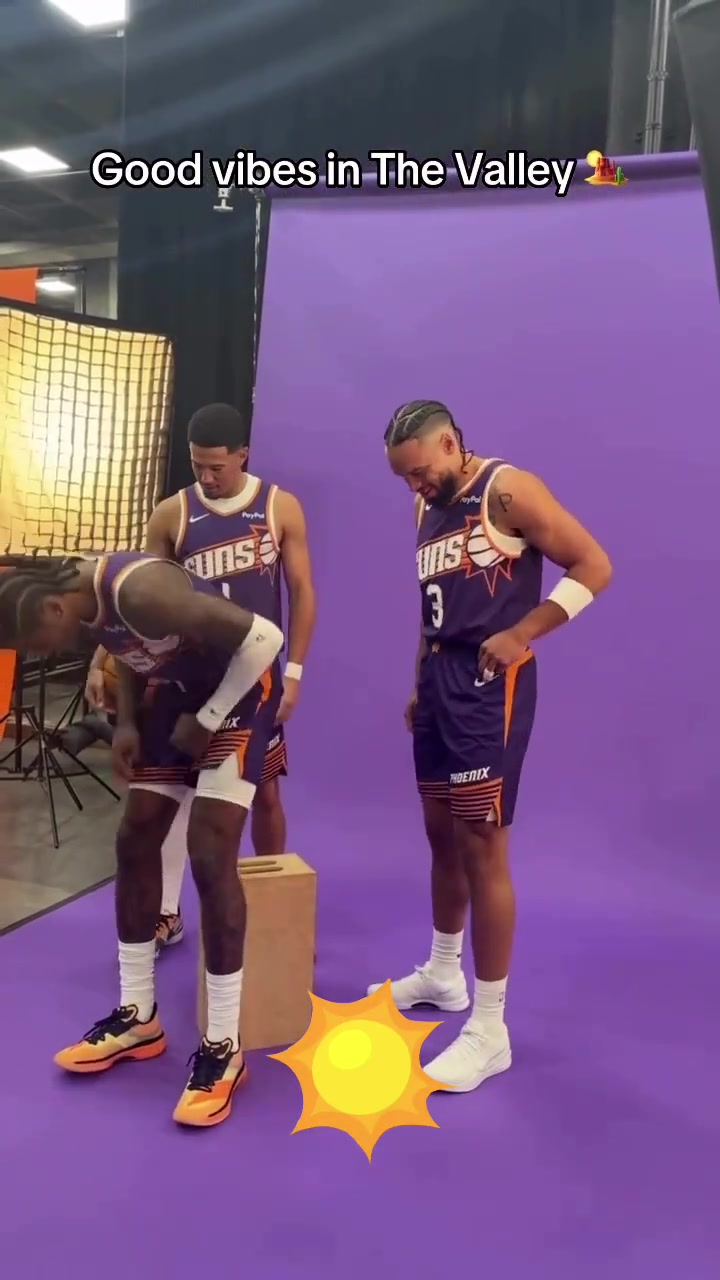 小子挺有地位啊杰伦-格林坐在C位 布克和狄龙分列左右